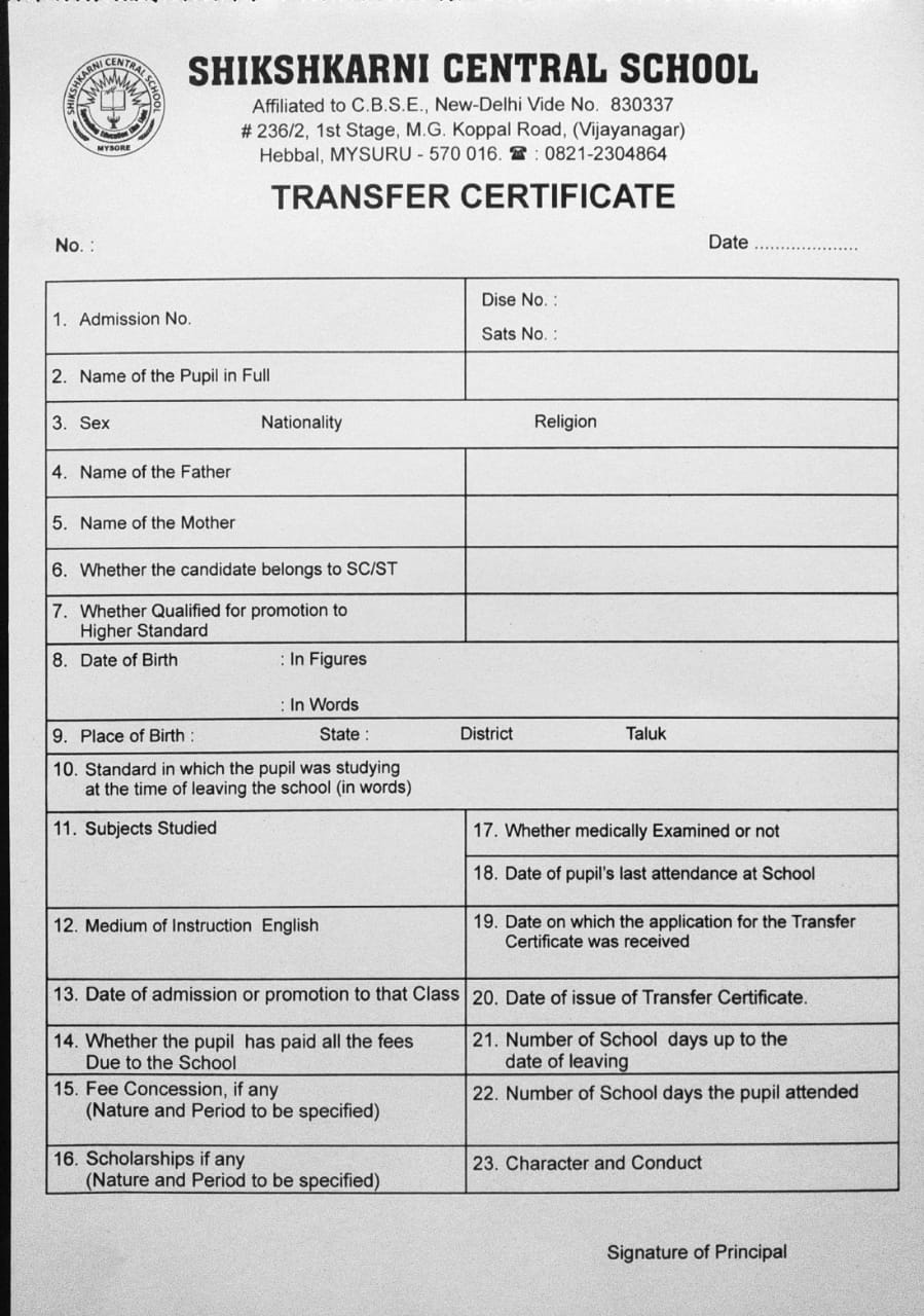 5 Transfer Certificate (in original) in the case of those seeking Transfer Admission (Class 2 and above)